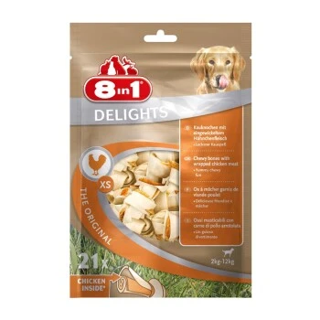 Avec beaucoup de poulet de bonne qualité enveloppé dans de la peau de bœuf de première qualité, les 8in1 Delights garantissent un plaisir de mastication prolongé sans laisser de restes.