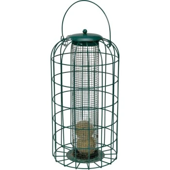 Les oiseaux plus grands, ainsi que les écureuils ne peuvent pas se glisser à travers le panier de protection pour accéder aux boules de graisse. Cette colonne de nourriture est idéale à suspendre et très facile à remplir. La colonne peut contenir jusqu’à 6 boules de graisse. De plus, la colonne est résistante aux intempéries et convient donc pour la nourriture toute l’année.