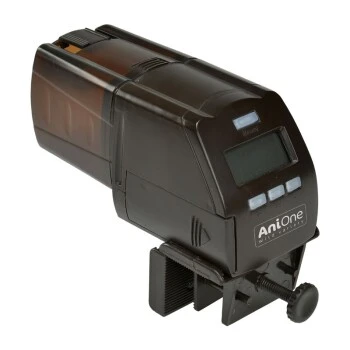 Les touches de l’appareil sont protégées contre les éclaboussures. Patte scratchée en Velcro incluse à fixer sur les aquariums ou les terrariums ouverts sur le dessus. Piles non incluses. 2 piles AA requises. Contenance : 200 ml