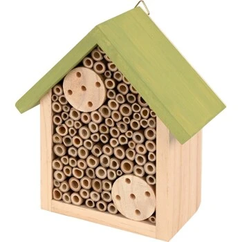 Le nichoir rempli de bois de bambou est fabriqué en bois dur et soutient ainsi les abeilles sauvages et autres insectes qui contribuent de manière importante à la pollinisation. Les bords lisses augmentent les chances d’une colonisation et le toit métallique protège contre les intempéries.