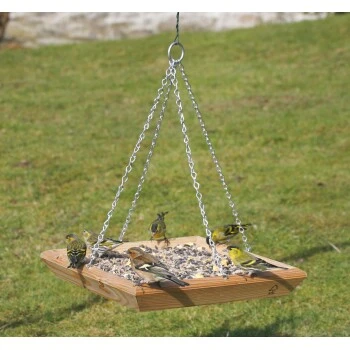 La mangeoire indépendante de CJ Wildbird prend peu de place et sa construction ouverte attire un grand nombre d’espèces d’oiseaux sur une table de nourriture richement fournie.