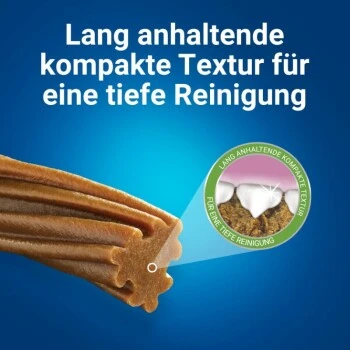 Avec DENTALIFE, les experts ont développé un snack de soins dentaires innovant, dont il est scientifiquement prouvé qu’ils nettoient même les dents difficiles à atteindre qui sont les plus sensibles à la formation de plaque dentaire et de tartre. La texture compacte des bâtonnets de soins dentaires assure un nettoyage en profondeur des dents et lutte contre la mauvaise haleine et l’haleine chargée chez les chiens. Grâce au nettoyage des dents particulièrement efficace du DuraPlus, il suffit de donner à votre fidèle compagnon une friandise pour soins dentaires tous les deux jours.