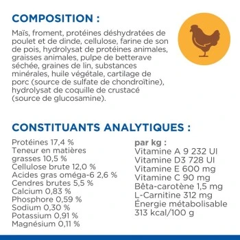 - Avec régulation de la satiété pour que votre chien âgé se sente rasassié et satisfait entre les repas