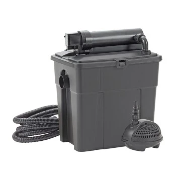 Eau limpide garantie : le set de filtres de passage compact MultiClear 8000 est adaptĂ© aux Ă©tangs jusqu’Ă 8 000 l sans poisson/4 000 l avec poisson.