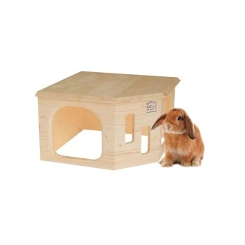 Le coin pour lapin RESCH grand dispose de deux grandes entrées et d’une grande surface de couchage sur le toit.