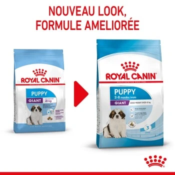 ROYAL CANIN Giant Puppy est conçu pour les chiots de très grandes races âgés de 2 à 8 mois dont le poids adulte moyen est de 45 kg et plus.