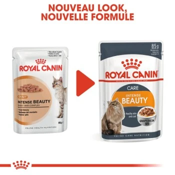 Afin de répondre aux attentes particulières de chaque chat, ROYAL CANIN Intense Beauty est aussi disponible sous forme de croquettes croustillantes, de morceaux en sauce ou de morceaux en gelée. Si vous envisagez une alimentation mixte à base d’aliments secs et humides, il vous suffit de suivre les conseils d’alimentation. Vous garantissez ainsi à votre chat qu’il recevra les quantités adéquates d’aliments secs et humides.