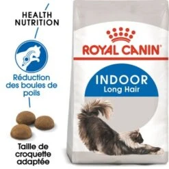 La nourriture ROYAL CANIN Indoor Long Hair a été spécialement adaptée aux besoins particuliers des chats d’appartement à poils longs. La nourriture sèche stimule naturellement l’activité intestinale et favorise une bonne digestion grâce à des fibres sélectionnées (y compris du psyllium). Cela aide ainsi les chats à expulser les poils qu’ils ont avalés lors de leur toilette. Cela évite donc la formation d’une boule de poils.