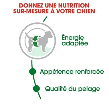 Certains petits chiens sont plus sélectifs que d’autres en matière d’alimentation. C’est pourquoi la recette Royal Canin Mini Adulte contient un choix de saveurs exclusives. Son excellent goût plaît au chien même le plus difficile et assure ainsi l’absorption des nutriments essentiels.