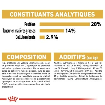 Tous les produits Royal Canin sont soumis à un contrôle de qualité complet afin de garantir une qualité optimale de la nourriture et de répondre aux besoins individuels de nutrition et au style de vie de votre chien. En d’autres termes, avec Royal Canin Basset Adulte, vous offrez à votre chien une alimentation de qualité et équilibrée.