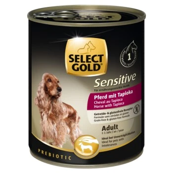L’aliment humide SELECT GOLD Sensitive est la solution pour les chiens sujets à des intolérances alimentaires ou à des problèmes digestifs.